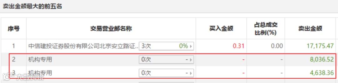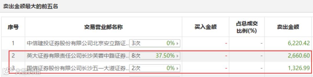 值得注意的是,在2019年12月31日的龙虎榜中,出现了两个长沙当地的营业部席位,即英大证券长沙芙蓉中路证券营业部和国信证券长沙五一大道证券营业部,合计卖出金额达3987万元,买入金额为0元。