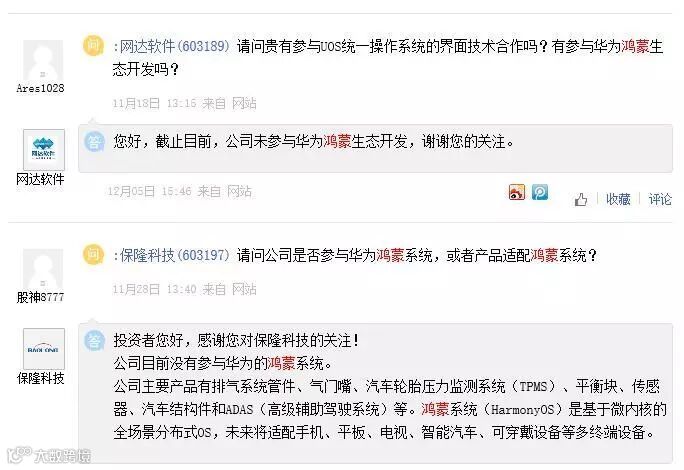 多数公司直接表示,未参加华为鸿蒙系统的研发或者未有合作。
