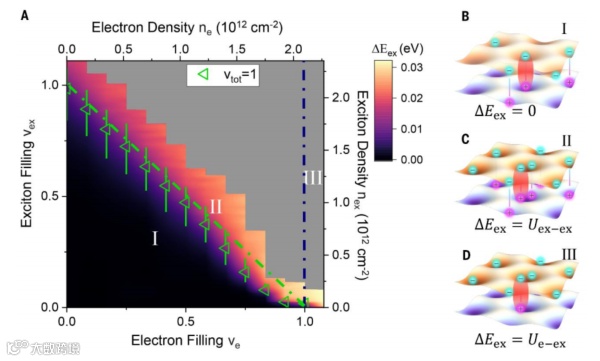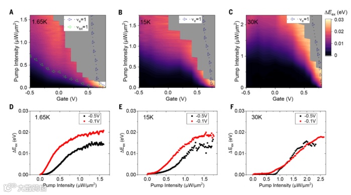 所跨越的相图,发现注入的任何额外激子都被迫进入更高的能态。通过将栅极电压V