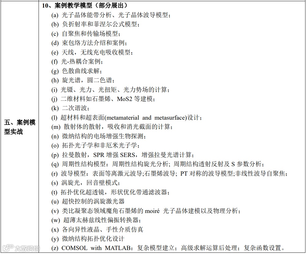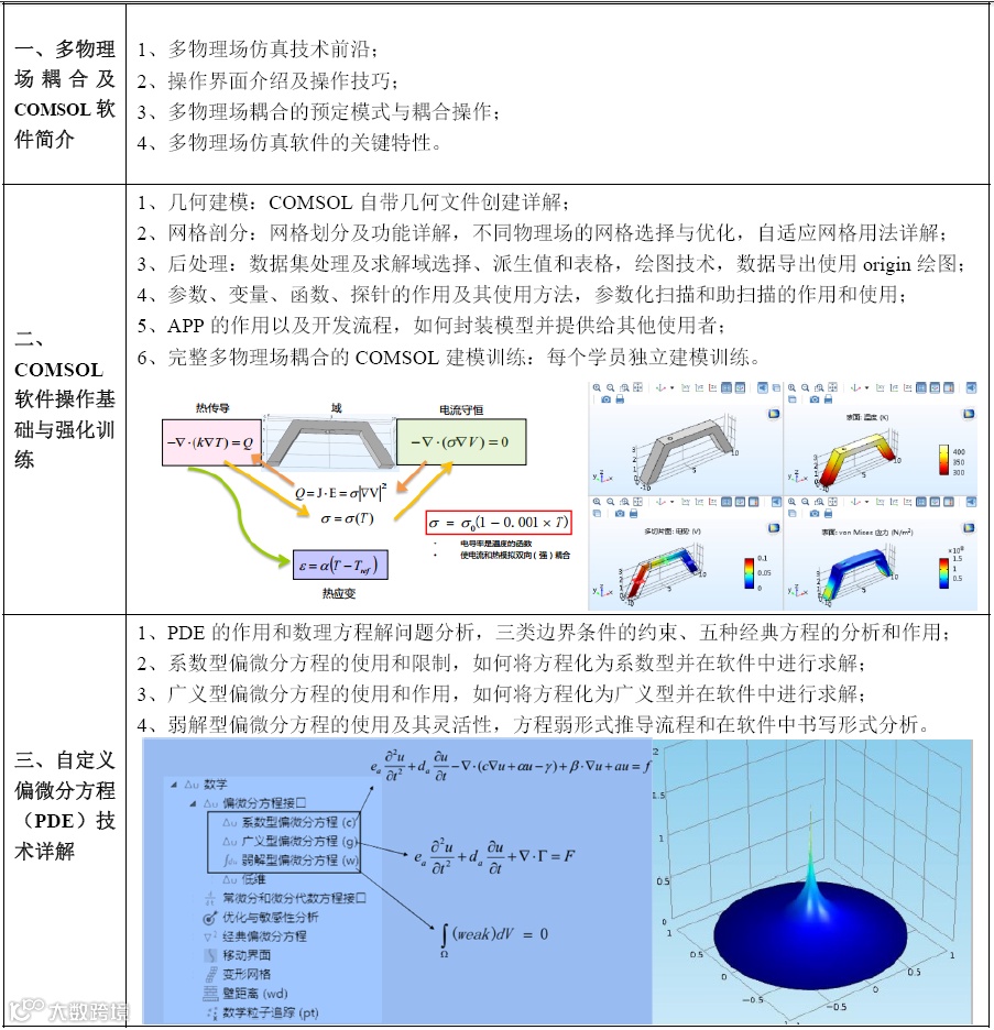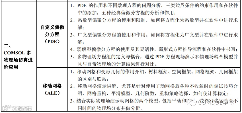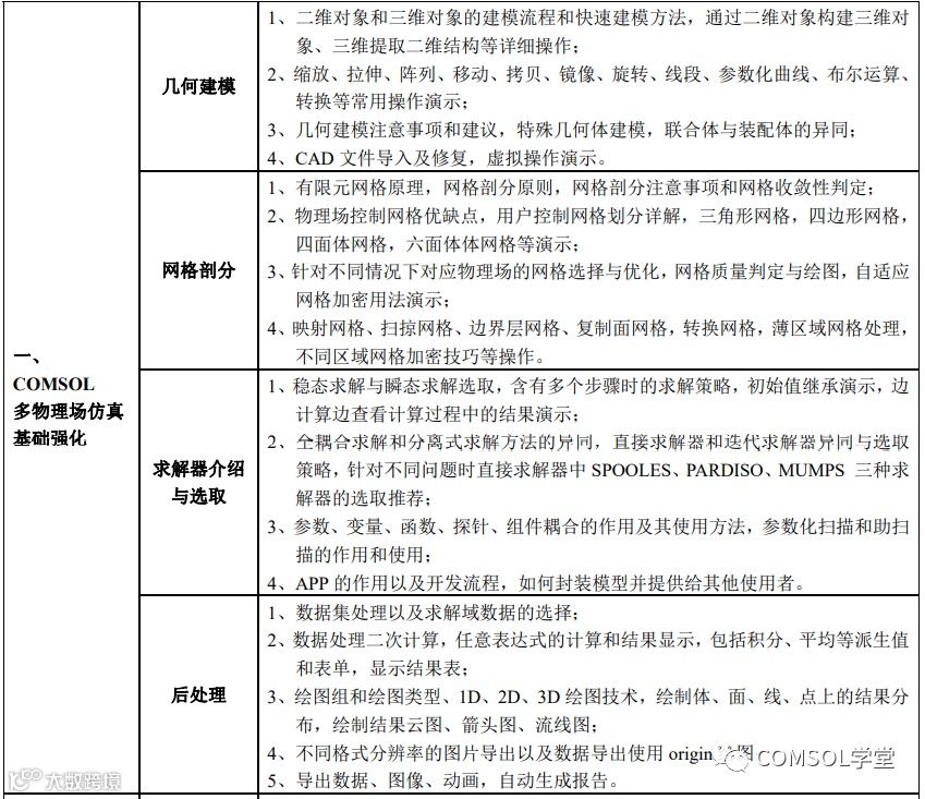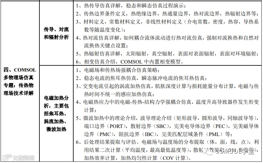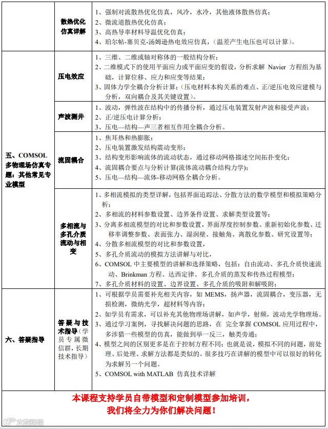 | 专题一:多物理场仿真技术应用专题(点击查看) | COMSOL多物理场建模与仿真核心技术 多物理场耦合理论-操作实践-案例应用 |