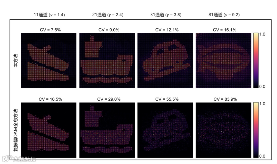 图5. 二值图像的OAM复用(最高9.2倍超分辨,81通道)