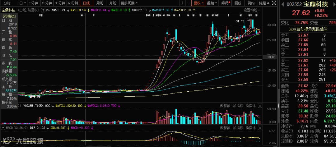 宝鼎科技和中潜股份就分别以441.41%和371.67%的涨幅跻身前十大牛股第五位和第八位。