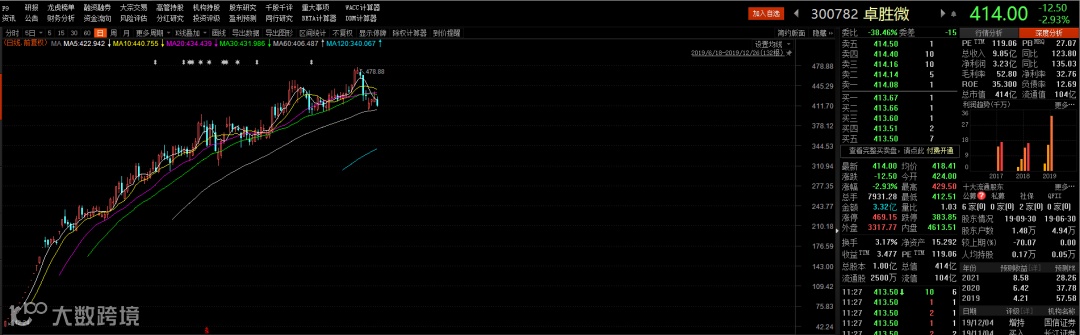 最后我们要说一下因为是次新股被剔除的卓胜微。其实,卓胜微才是今年两市涨幅之王,公司自6月上市以来,股价一路上行,涨幅超过10倍。
