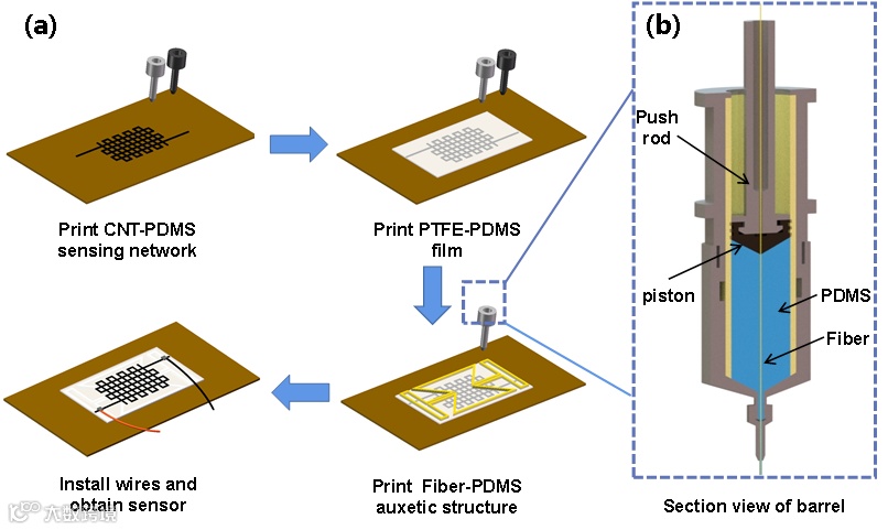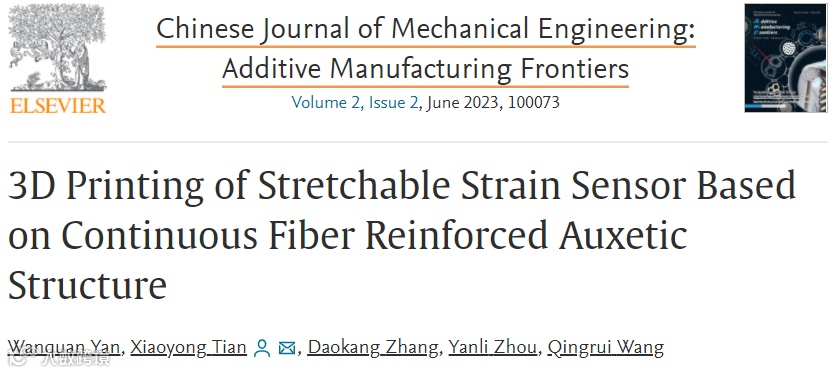 西交大田小永教授团队提出了一种基于连续纤维增强拉胀结构的可拉伸应变传感器,该传感器采用直接墨水书写( DIW ) 3D打印工艺制备。