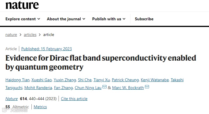Tian, H., Gao, X., Zhang, Y. et al. Evidence for Dirac flat band superconductivity enabled by quantum geometry. Nature 614, 440–444 (2023).