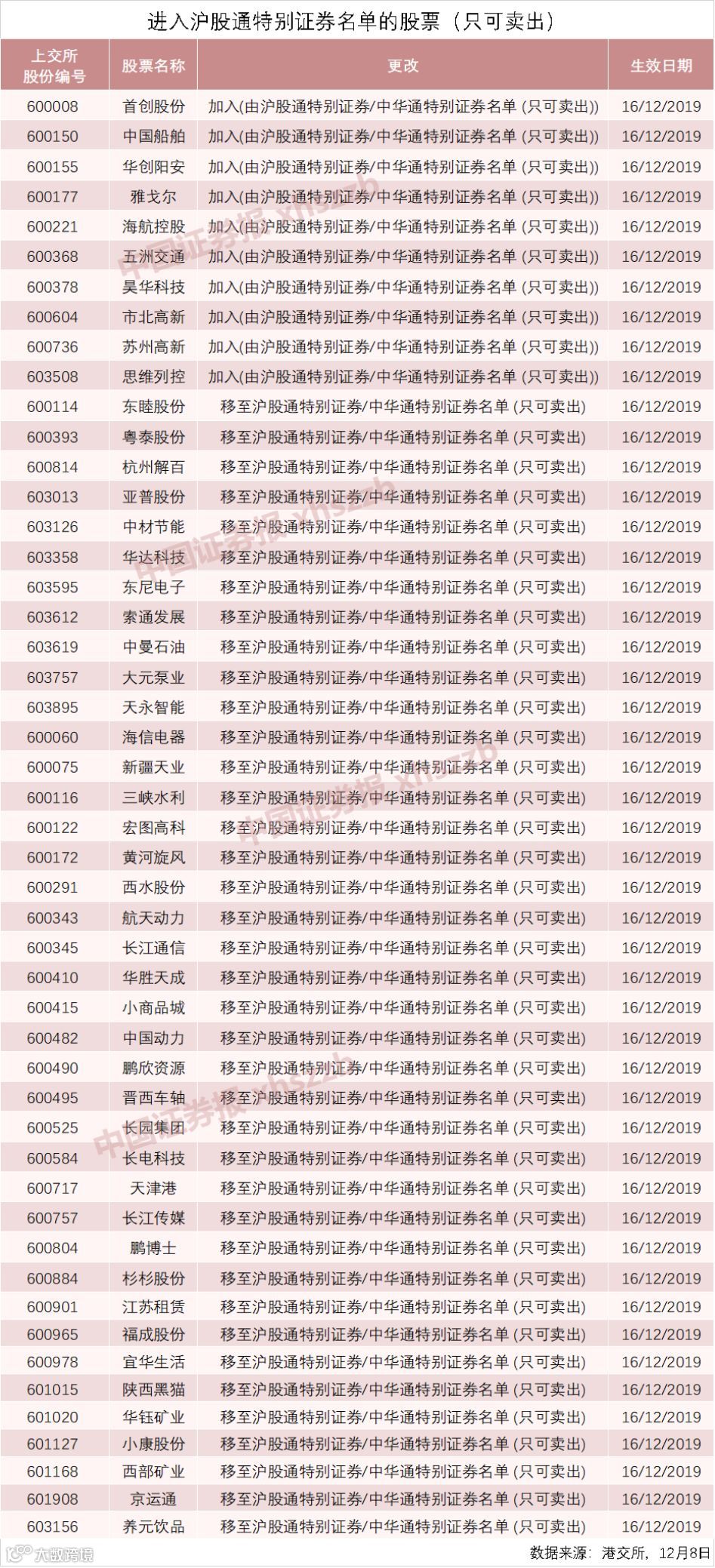 值得注意的是,首创股份、中国船舶等49只个股进入沪股通特别证券/中华通特别证券名单。这49只个股将只可卖出,生效时间为12月16日。
