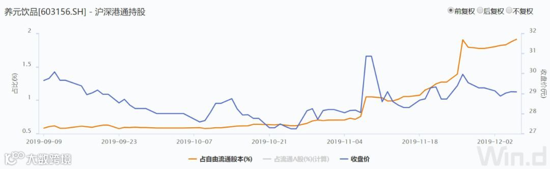 以养元饮品为例。11月7日收盘(MSCI公布中盘股纳入名单前一天),北向资金持有养元饮品股份占流通股比例仅为0.76%。截至12月6日,北向资金持股养元饮品占流通股比例升至1.91%,期间增持约147.5万股。