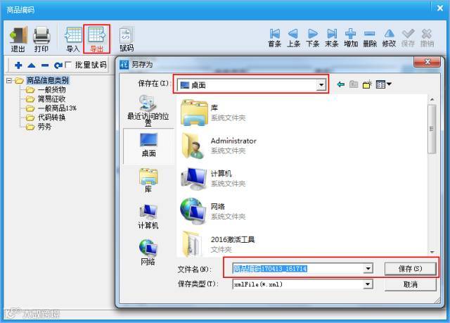 ❷商品编码导出(多个商品编码表逐一分别导出)