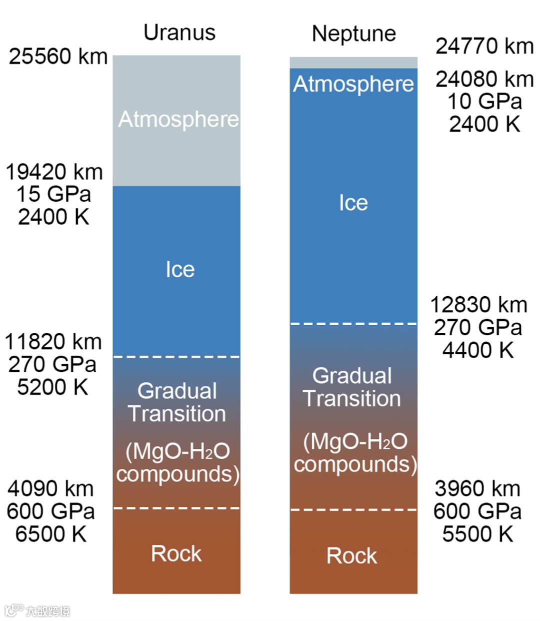 研究水与岩石矿物在高压下的混合与反应具有重要意义,因为太阳系内外的诸多行星内部都富含水与岩石。天王星和海王星因为距离太阳很远,温度较低,而其内部又有大量含水物质,因此被称为冰巨星。目前,关于冰巨星还存在许多未解之谜,例如其多极磁场的起源、天王星的低亮度等。行星内部物质的结构、物态和性质是解决这些谜题的关键信息 。