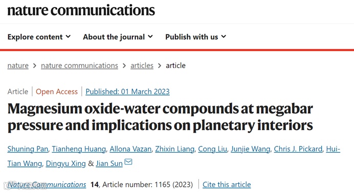 相关研究成果以 “Magnesium Oxide-Water Compounds at Megabar Pressure and Implications on Planetary Interiors” 为题,于近日发表在 《Nature Communications》 上, [Nat. Commun. 14, 1165 (2023)] 。