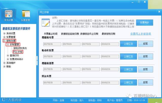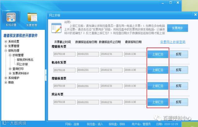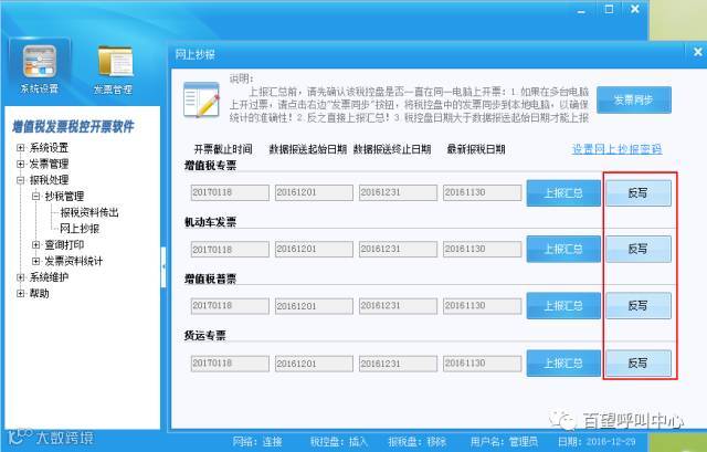 2、如查看上述日期都未更新,则需要您进行手工操作抄报和反写,具体流程为: