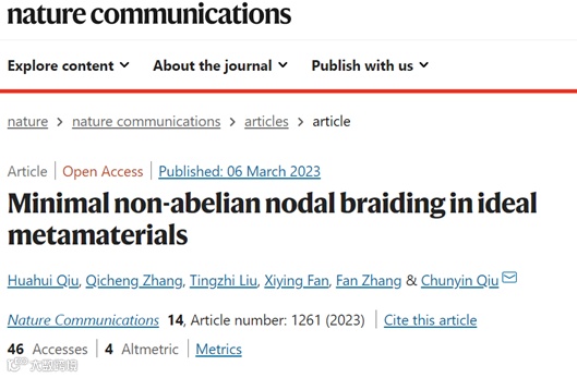 多带隙拓扑体系具有独特的非阿贝尔编织结构,是一种全新的能带拓扑类型。3月6日,Nature Communications(《自然通讯》)在线发表了武汉大学物理学院邱春印教授课题组在这方面的研究进展。论文题为“Minimal non-abelian nodal braiding in ideal metamaterials”(理想超材料中的最简非阿贝尔节点编织)。武汉大学为论文的第一署名单位,邱华辉博士和张起成博士后为论文的共同第一作者,邱春印教授为通讯作者。合作者包括刘亭志博士、范喜迎博士后,以及美国UT Dallas大学的张帆教授。该研究受到国家自然科学基金委重大项目、万人计划“青年拔尖人才”项目等基金资助。