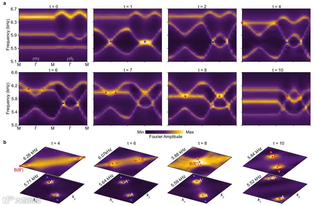借助于一个简单的三原子紧束缚模型(图1),本工作构建了理想的声学超材料(图2),实现了最少能带节点之间的非阿贝尔编织。通过用一系列不同几何参数的声学样品模拟时间,实验观察到一个优美但不平庸的节点编织过程(图3),包括节点的产生、编织、碰撞和排斥(即不会湮灭)。于此同时,从波函数层次测量镜面本征值,进而展示能带反转的编织结果(图4)。这一点是极其重要的,因为编织物理本质上是针对多能带纠缠的波函数。此外,这项工作还实验揭示了多带隙边缘响应与体非阿贝尔荷之间高度复杂的相关性(图5)。这项工作为推动仍处于起步阶段的非阿贝尔拓扑物理铺平了道路。