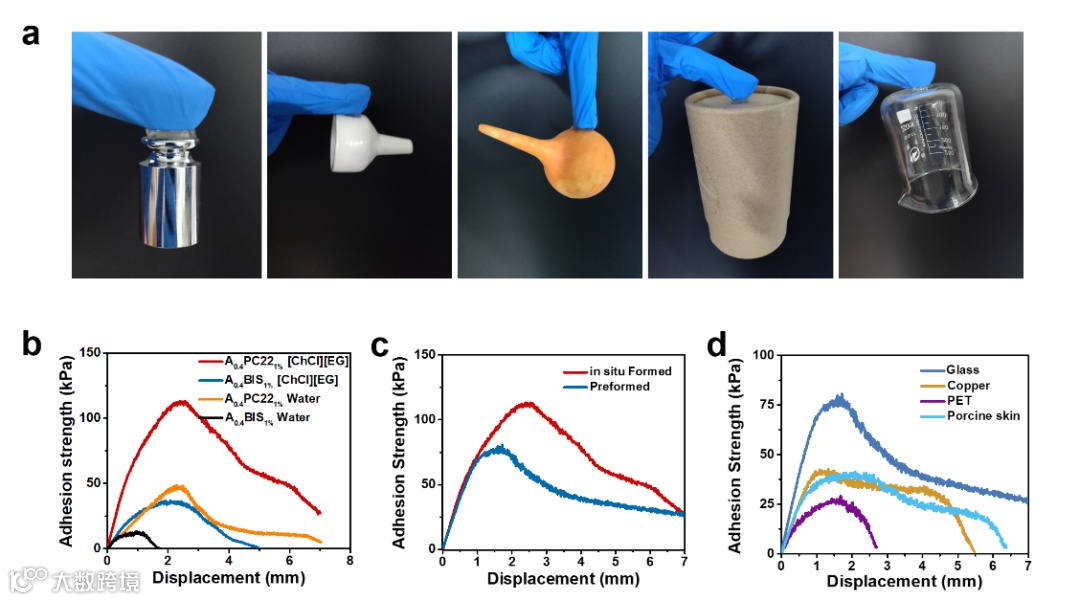 (3)高粘性。粘附强度达112.4 kPa。可以很好粘附金属、玻璃、陶瓷、皮肤等多种材料。