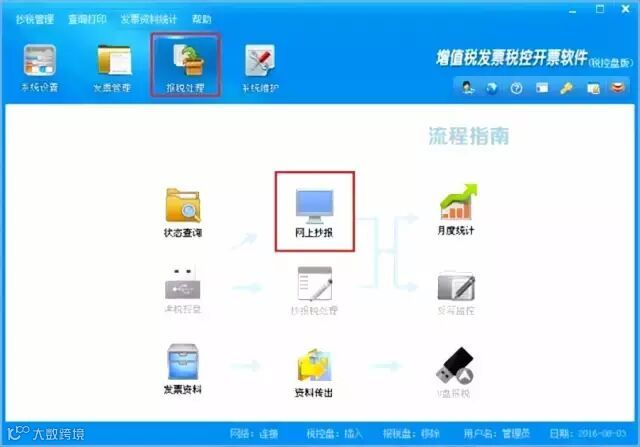 第一步:进入开票软件,点击报税处理——网上抄报。