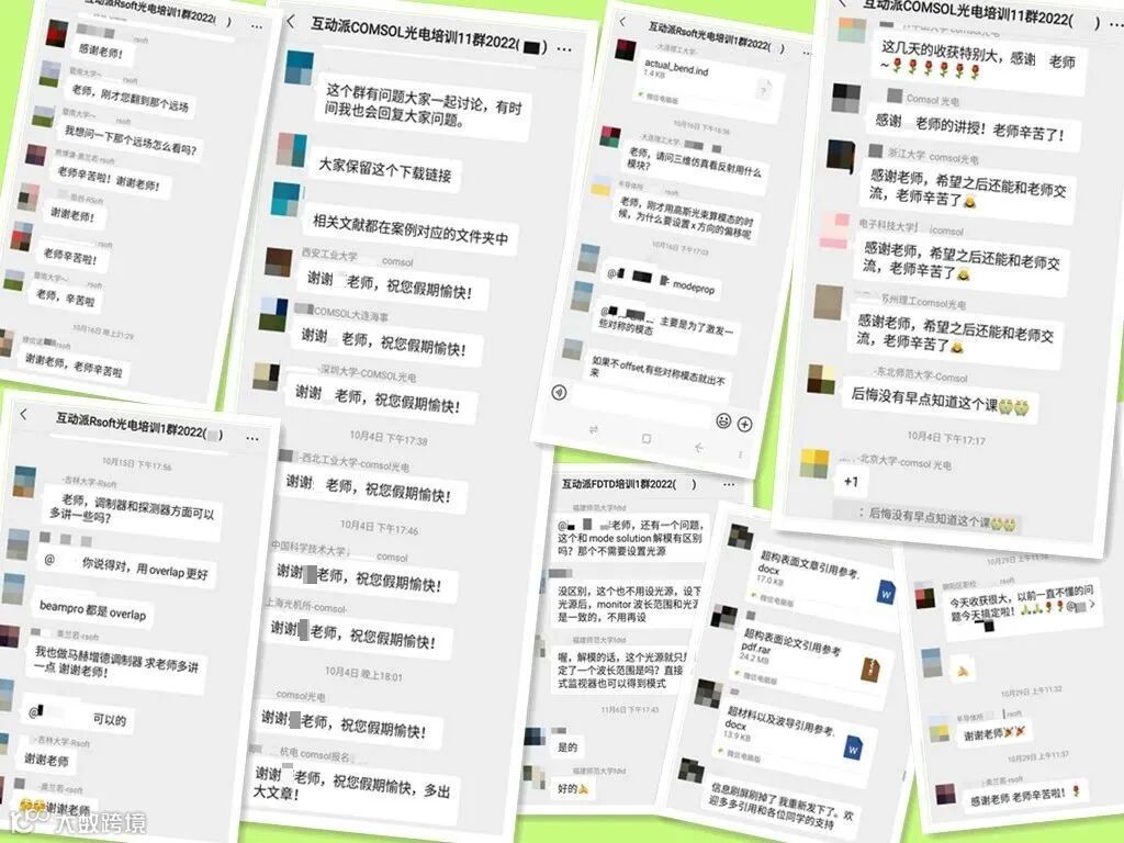 1. 本次系列课程共三个专题,均采用在线直播(理论+实操)、Step by step的教学方式、课堂上连麦答疑、课后提供无限次回放视频,发送全部案例模型文件,建立永不解散的课程群,长期互动答疑;课堂上以具体案例和科研论文为实例,讨论在处理具体问题时如何应用专业软件以及如何做出能够发表的结果;