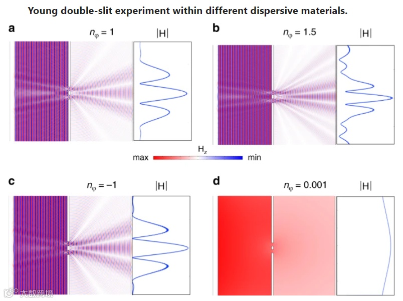 “当我们对杨氏双缝实验进行建模和数值计算时,发现当折射率降低时,衍射条纹消失了,”合著者、丹麦技术大学的Larissa Vertchenko说。