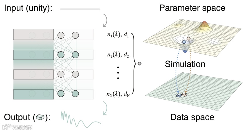 复享光学将光学逆问题研究主体(多层薄膜)视为神经网络来构建映射关系,并进行优化训练。这是全球首次将反向传播算法引入薄膜优化过程,在复享深度光谱™技术框架下开创性地发展了薄膜神经网络技术,极大地缩短了百层薄膜厚度的优化时间,相比于传统微扰差分的方法,其单次优化时间缩短为原来的2%。