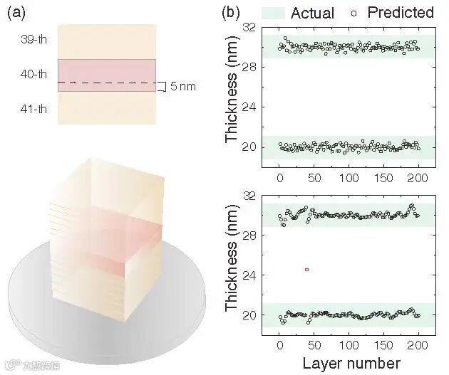 在晶圆膜厚量测过程中,基于薄膜神经网络的测量结果与国际量测标准的数据进行对比,误差在万分之一以内(<0.1 nm)。这一结果证明了该技术在晶圆级薄膜厚度测量场景中的可行性。