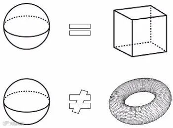 图1 球体和正方体拓扑等价,球体与甜甜圈形状几何体拓扑不等价