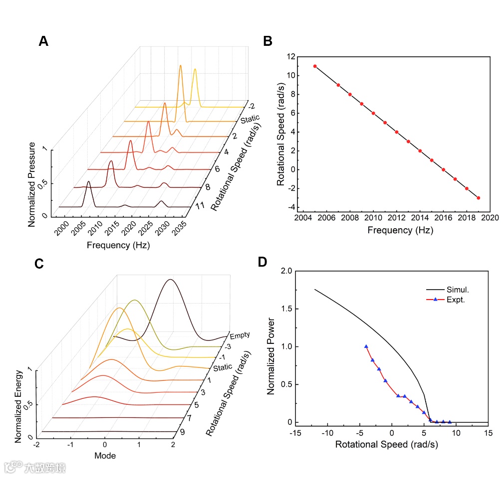 (图1 D灰色箭头所示)。随着有源控制的引入(机械旋转的启动),RDE将被引入至系统之中。受到转动速度与转动方向的影响,系统将表现出频移、波数和能流的改变,即