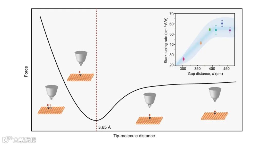 他们发现,当针尖逼近Cu(100)表面上的单个CO分子时,针尖会诱导C−O化学键发生弱化,导致分子发生倾斜和跳跃现象,并揭示了背后的具体物理化学机制,展示了该技术在揭示针尖-分子相互作用以及表面上针尖诱导分子运动的微观机制方面的强大能力。