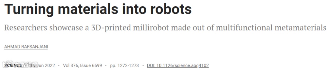 报告的设计框架和制造方法对微型机器人、传感器和机器人材料的未来发展具有直接影响;将有可能通过简化的人造材料实现期望的运动和决策。
