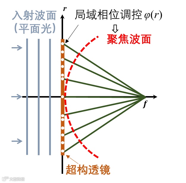 超构透镜是实现透镜成像功能的超构表面(又称“超表面”)(名词解释)。它基于亚波长的人工结构单元对入射光的相位等参量进行局域调控(即每个位置空间的单元引入相互独立的相位突变),从而构建聚焦波面对应的相位分布,最终实现透镜聚焦或成像的功能。与传统光学透镜相比,超构透镜是平面结构,具备超轻超薄(微米/亚微米厚度)等特征,有望实现高度集成的成像系统。因此,超构透镜是近年来最热门的研究领域之一。其中全介质超构透镜由于更高的聚焦和成像效率,比包含金属的超构透镜更受研究人员的青睐。