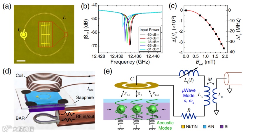 近日,耶鲁大学的Hong X. Tang教授课题组提出了一种非线性多模超导电声系统,其中超导动力电感和压电强耦合的相互作用在10 GHz时建立了多个声模之间建立了有效的Kerr非线性,这是通过固有机械非线性难以实现的。通过用单微波音调激发这个多模Kerr系统,作者进一步证明了一个相干电声频率梳,并为超强耦合极限下的多模非线性相互作用提供了理论理解。该非线性超导电声系统揭示了多模谐振器系统的主动控制,并为微波频率下微梳的动态研究提供了一个可能的平台。相关工作发表在《PHYSICAL REVIEW LETTERS》上,并被选为编辑推荐文章。(郑江坡)