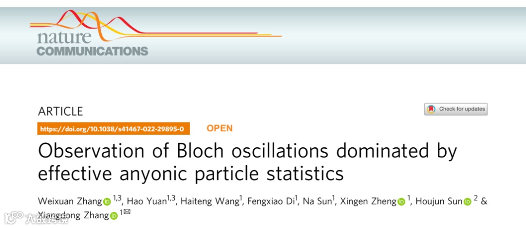 的相位。科学家研究发现,双体任意子系统可以展现与统计相关的布洛赫振荡行为。虽然理论结果显示赝费米子振荡周期是玻色子的两倍,但处于中间统计角(0<统计角<