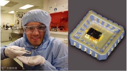 图1:(左)论文第一作者 Wladislaw Michailow 博士在超净实验室里展示太赫兹探测器;