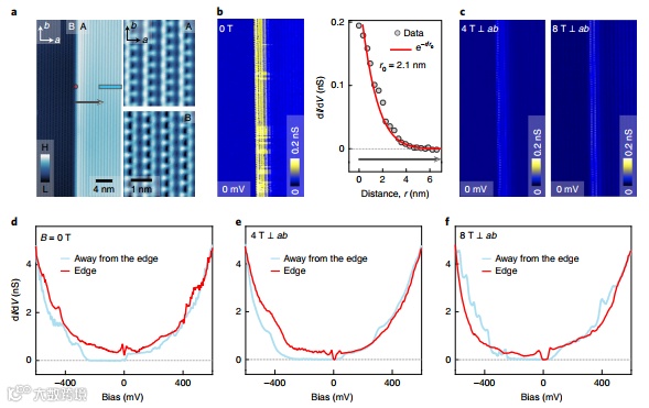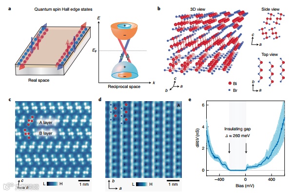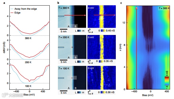 使用矢量磁场和基于可变温度的扫描隧道显微镜,以提供高阶拓扑绝缘体Bi4Br4表面上室温量子自旋霍尔边缘态的微观光谱证据。研究发现原子分辨的晶格,显示出超过200meV较大绝缘能隙,并且原子尖锐的单层台阶边缘,具有能隙内的无能隙态in-gap gapless state,