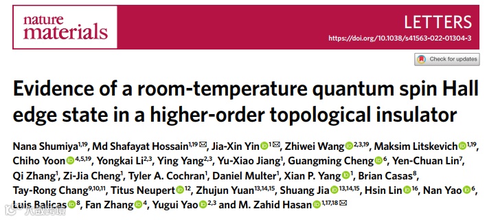 近日,美国 普林斯顿大学(Princeton University)Nana Shumiya,Md Shafayat Hossain,Jia-Xin Yin,Maksim Litskevich,M. Zahid Hasan等,北京理工大学 物理学院 王秩伟Zhiwei Wang,得克萨斯大学达拉斯分校(The University of Texas at Dallas)Chiho Yoon,在Nature Materials上发文,