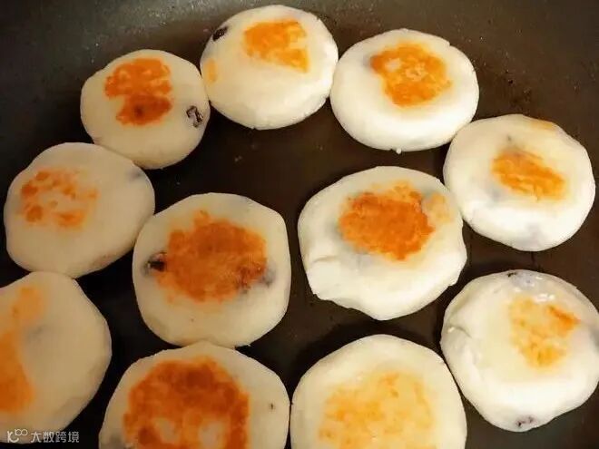 3、锅中倒入适量油,将山药饼加入先煎制成两面焦黄,然后倒入少量水加盖焖制即可出锅。