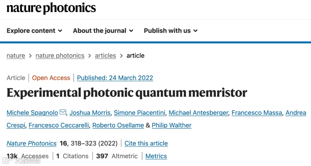 量子计算和神经形态计算都有希望从根本上改变我们处理计算的方式。日前,奥地利和意大利的研究人员开发出一种可以构成量子神经网络基础的「量子忆阻器」,融合了这两种计算范式。相关成果以「Experimental photonic quantum memristor」为题发表在Nature Photonics杂志上。