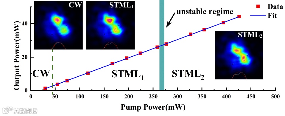 图3 时空锁模光纤激光器的功率演变图:在258 mW-277 mW泵浦功率范围内存在模场不稳定。