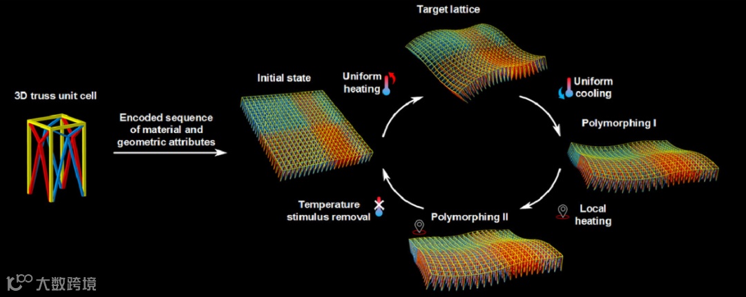 6.温度响应可编程变形、坚硬桁架超构材料