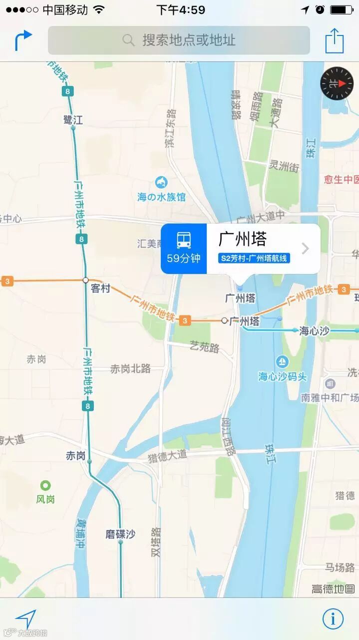 另外,地图 App 还能显示出特定交通线的站点,只需点击你想了解的路线,各个站点就会浮现。但这个功能仅适用于 Apple 地图提供路线支持的城市,比如广州。