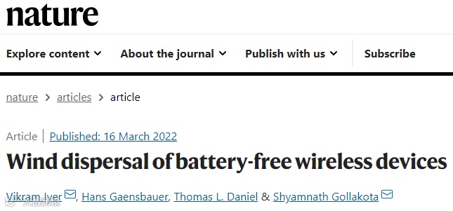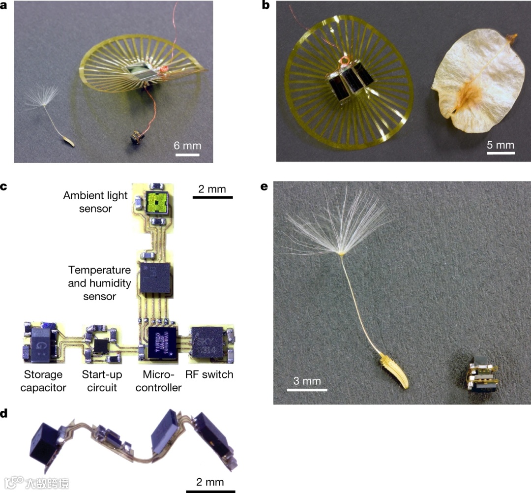 植物利用风来运输种子对建立传感器网络来说非常有吸引力:在广阔的地理区域内分散大量低成本传感器以实现广域传感。然而,先前尝试的自动传感器网络分散数量级更大、更重的空气动力学结构或需要使用电池供电。