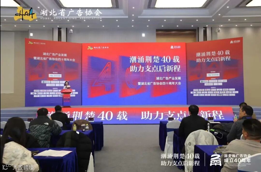 2026年1月23日,湖北广告产业发展暨湖北省广告协会成立四十周年大会在武汉体育中心举行。大会由湖北省市场监督管理局、湖北省广告协会联合主办,以“潮涌荆楚四十载,助力支点启新程”为主题,系统回顾湖北广告产业四十年发展历程,并围绕新时代背景下广告产业的高质量发展展开深入交流。