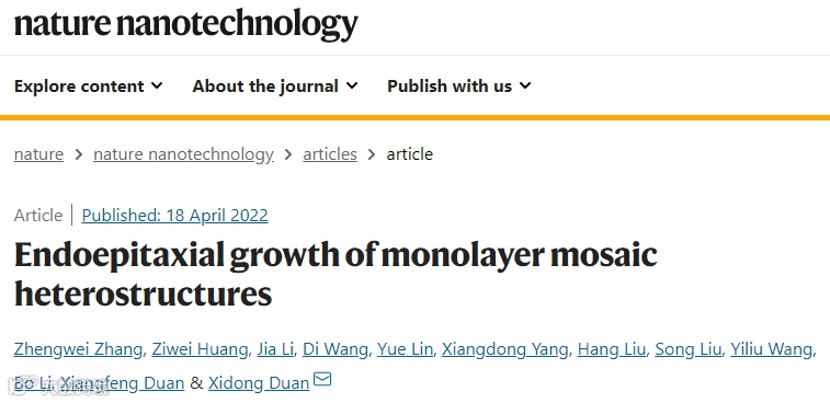 1. 本工作报告了一种在单层二维原子晶体中制造镶嵌异质结构阵列的合理合成策略。通过使用激光图案化和各向异性热蚀刻工艺,本工作在二维晶体中创建了具有精确控制尺寸和原子级清洁边缘的周期性三角形孔阵列,作为另一个二维晶体的内外延生长的稳健模板,以获得单层镶嵌异质结构原子级尖锐异质结界面。