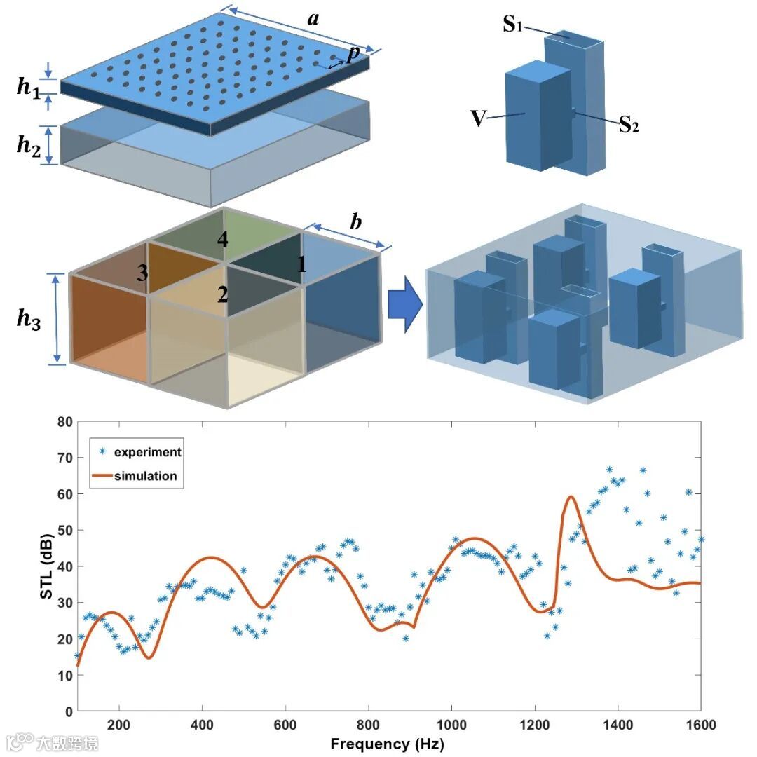 近日,东南大学机械工程学院张辉教授团队和法国国家科学院Badreddine Assouar教授团队合作提出一种超薄的基于声超表面的宽带低频消声器。该工作首次提出利用微穿孔板耦合多种参数的复合波导,通过耦合共振实现低频超宽带通风型隔声。在100-1600Hz四个倍频程范围内实现了高于20dB隔声量的隔声。而整个3-D打印的超表面样品的厚度只有6.2cm,对应于最大工作波长的1/55。结构的设计可通过电力声类比的等效电路模型进行理论分析,通过对比不同的结构参数,如穿孔板孔径、中间层的厚度,最终得到优化的隔声曲线。该设计在隔声效率、带宽、通风性和样品厚度四方面具有良好的表现。该工作极大地促进了在满足通风的前提下,声超表面在低频宽带隔声的应用。该工作在工程领域和实际应用场合具有广泛的应用前景。相关研究工作发表在《Physical Review Applied》上。