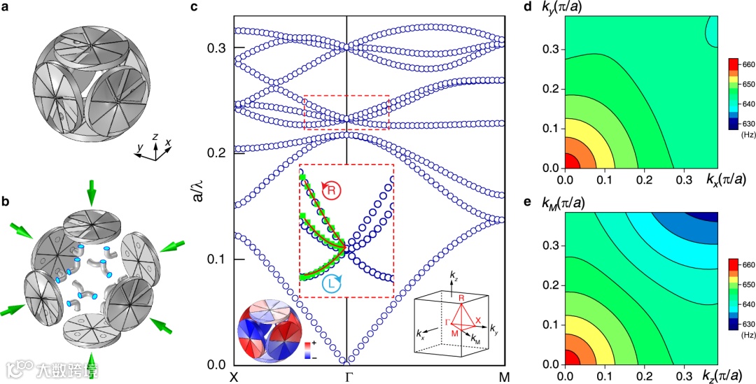 图3. 三维微极超材料及其能带性质。