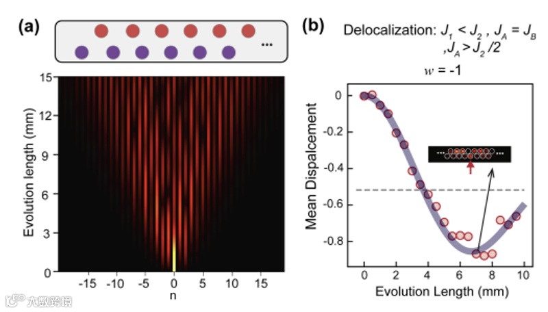 实验上,为了在手性破缺的广义SSH模型下测量量子化的Zak相和体拓扑不变量无法预测的本征态的数目,金贤敏团队和米兰理工大学Stefano Longhi教授合作,使用一个锯齿形结构的波导晶格来引入弱次近邻耦合,以打破手性对称性,从而如图一所示构建了一个广义SSH晶格。