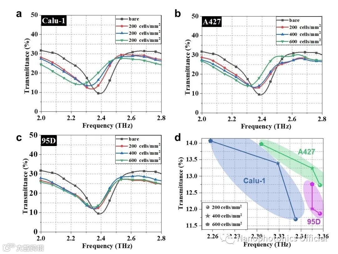 图3 不同浓度下的肺癌细胞培养在太赫兹传感器上