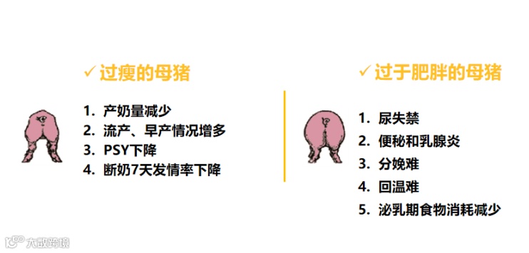 妊娠母猪过胖或过瘦造成的不良影响,如下图: