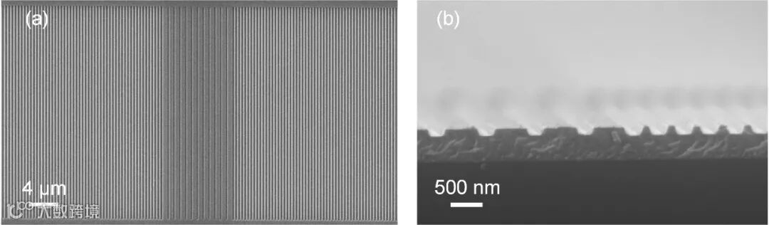 图2 器件的扫描电子显微镜(a)俯视图与(b)横截面图