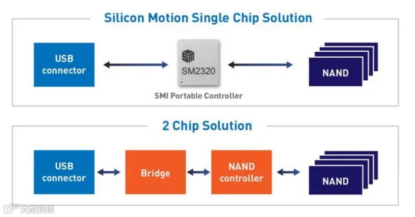 而慧荣推出的SM2320单芯片PSSD主控则将桥接芯片直接整合到了主控里面,这样无疑给PCB主板腾出了更多空间,使得PSSD的体型可以做到极致小巧。