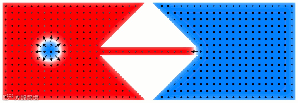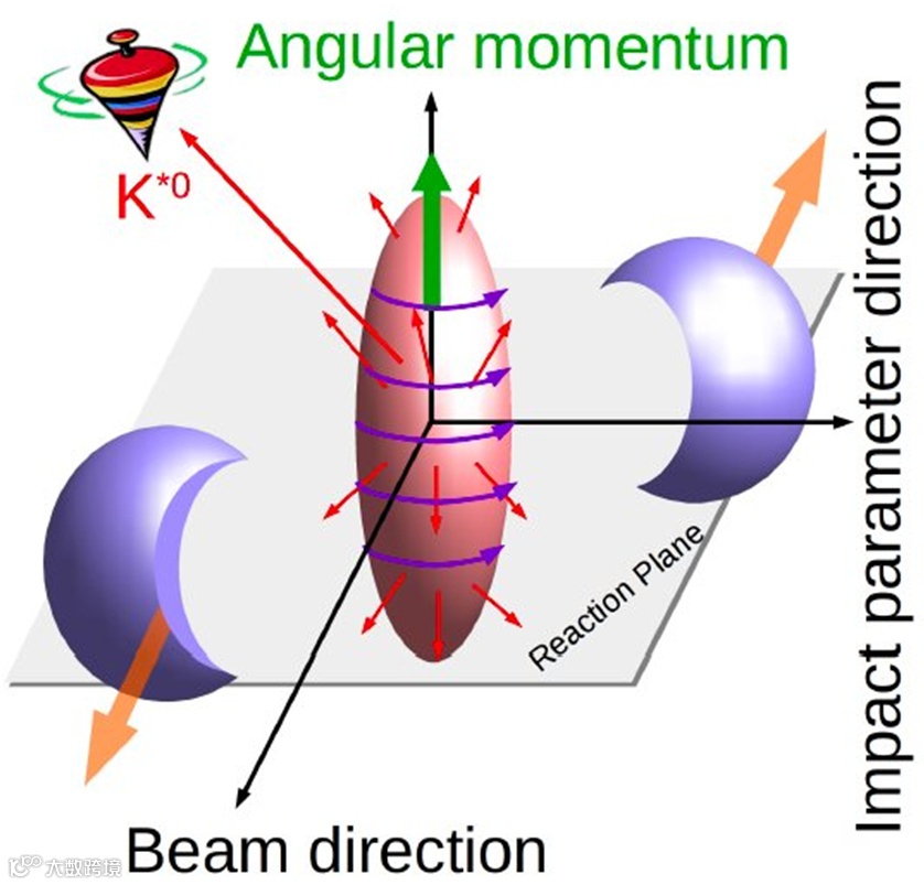 Skyrme 先生解出的孤子态,到目前为止在高能物理中似乎尚未很好地实现。笔者在谷歌中闲逛,倒是看到一幅所谓重核碰撞角动量示意图,如图 2 所示。2020 年,欧洲核子研究中心的大型强子对撞机针对 ALICE 重离子探测实验,报道的结果中展示了这幅图像。我们不妨望文生义,似乎是看到了其中的自旋分布与我们印象重的斯格明子有某些对应性。
