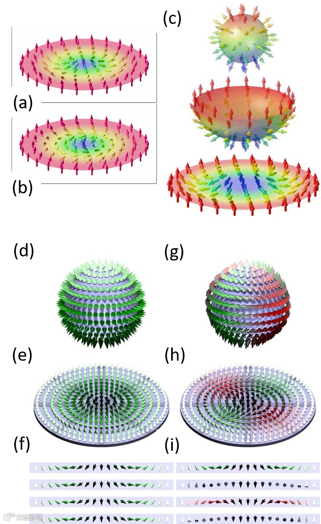 依笔者未必正确的感受,这种特定磁结构,有些张牙舞爪、有些宗教味道和玄妙色彩。而依笔者粗陋的理解,基于 Skyrme 先生的孤子对应性,有如下几个层面的展现: